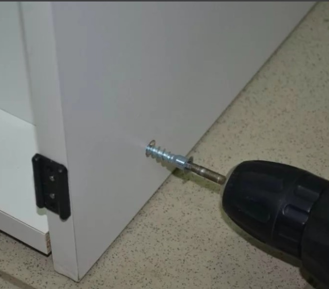 Сначала частные мастера сверяют каждую деталь разобранной мебели с чертежной схемой. Затем оценивают крепость стены, к которой будет фиксироваться шкаф. Далее собирается цокольная часть и устанавливаются ножки. Надежно фиксируются конфирманты и плотно вбиваются гвозди. Если в зоне монтажа мебели есть плинтус, его удаляют с целью максимального прилегания конструкции к стене.